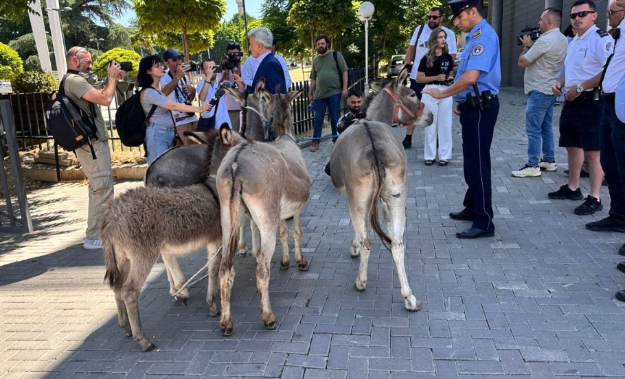Koci ka sjellë në ambientet e jashtme të Parlamentit katër gomerë.