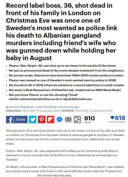 Ekzekutimi i një producenti para gruas dhe fëmijës së tij në Londër ditën e Krishtlindjes ka qenë i lidhur me disa vrasje të bandave shqiptare në Suedi, ku ai dikur ishte një nga më të kërkuarit, ka zbuluar MailOnline.