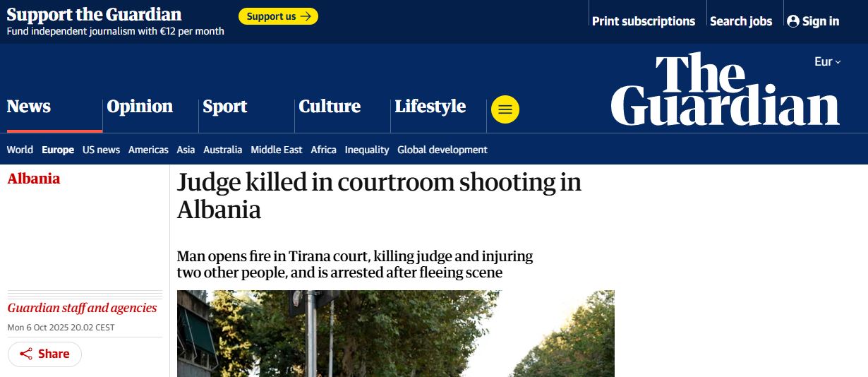 FOTO/ Mediat ndërkombëtare: Shqipëria në shok nga vr*sja gjakftohtë në sallën e gjyqit