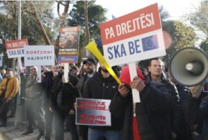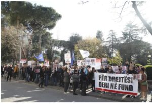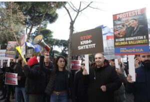 “Dil nga zyra dhe jep dorëheqjen”, “Pa drejtësi nuk ka BE”, “Jo shtetit që të merr peng” janë disa nga pankartat që protestuesit e partisë Mundësia mbajnë para kryesisë së Kuvendit, teksa po protestojnë kundër të pandehurës Belinda Balluku.