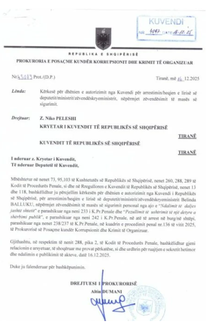 Altin Dumani ka firmosur shkresën për arrestimin e zv/kryeministres Balluku