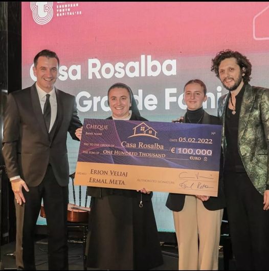 Këtë herë Veliaj shfaqet si bamirës krah artistit Ermal Meta. Të dy bashkë kanë dhuruar 100 mijë euro për një qendër të kishës katolike në Lezhë.