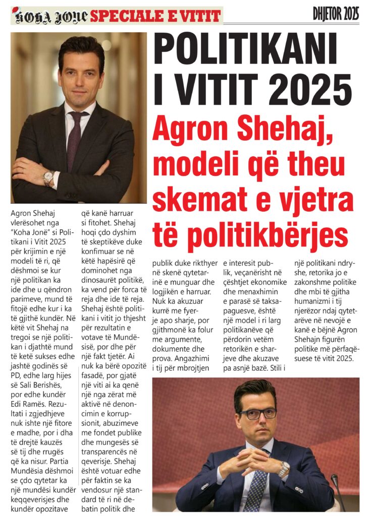 Gazeta “Koha Jonë” shpall “Njeriun e Vitit 2025”, edhe çmimet e tjera