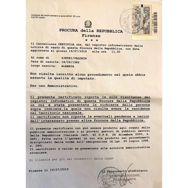 Nuk dua të hyj në baltën e PD-së, e cila ka javë që kërkon të njollosë figurën time. Ja ku janë çertifikatat e pastërtisë së figurës time në shtetin italian. Të tjerat i’a kam lënë atyre që duan të mbulojnë dështimet e tyre disa vjeçare duke njollosur emrin tim.