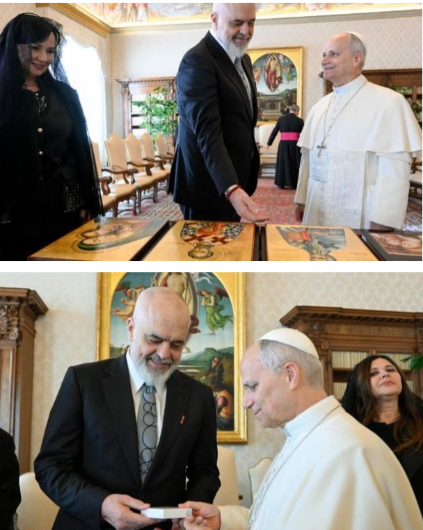 Kryeministri Edi Rama këtë të enjte ka zhvilluar një takim me Papa Leon XIV. Edhe gjatë këtij takimi Rama ka qenë i shoqëruar nga bashkëshortja e tij, Linda Rama dhe djali i tij.