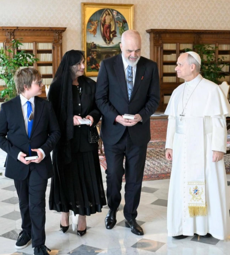 Kryeministri Edi Rama këtë të enjte ka zhvilluar një takim me Papa Leon XIV. Edhe gjatë këtij takimi Rama ka qenë i shoqëruar nga bashkëshortja e tij, Linda Rama dhe djali i tij, Zaho Rama.
