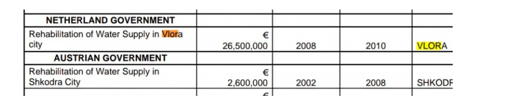 Shënim: Autorët dhe firma e përmendura në artikull janë të mirëpritur të na shkruajnë nëse duan të sqarojnë faktet e mësipërme, por pyetja e publikut shqiptar dhe në veçanti atij të Vlorës është se ku shkuan 26 milionë eurot e dhëna për këtë ujësjellës??