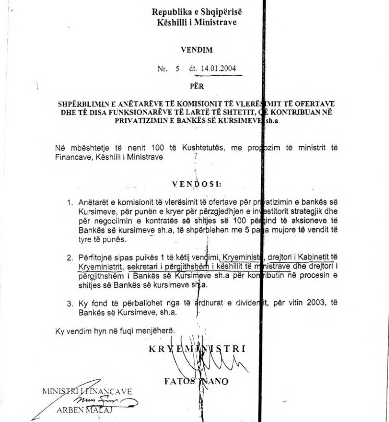 Ndër këto vite kanë firmosur Vilson Ahmeti, Aleksandër Meksi, Ilir Meta, Pandeli Majko, Sali Berisha dhe Edi Rama, por si VKM nr.5 datë 14/01/2004, nga kryeministri i kohës Fatos Nano, nuk ka ndodhur që të shpërblejnë veten me firmë e vulë dhe jo pak por me pesë paga mujore!