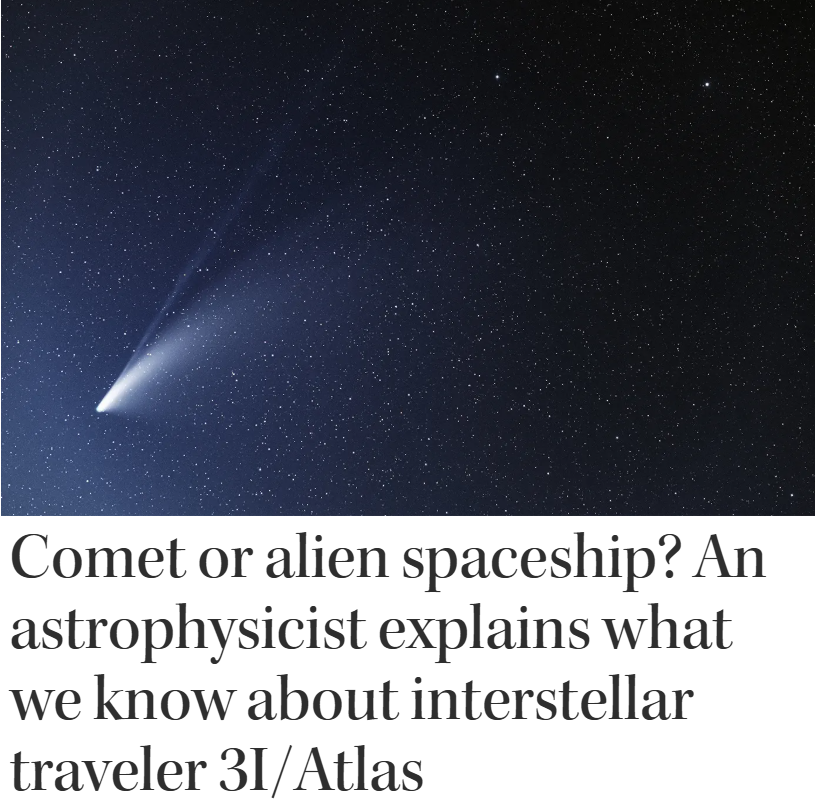 Pavarësisht disa sugjerimeve se mund të ishte një anije kozmike aliene, vëzhgimet nga disa prej teleskopëve më të fuqishëm zbuluan shpejt se ishte një kometë që fluturonte drejt nesh. Mund të mos jenë alienët që bëjnë kontaktin e parë, megjithatë 3I/Atlas, si vetëm objekti i tretë ndëryjor i dokumentuar që kalon nëpër sistemin diellor, ka ende shumë për të na mësuar, thotë Jacqueline McCleary, një profesoreshë asistente e fizikës në Universitetin Northeastern.