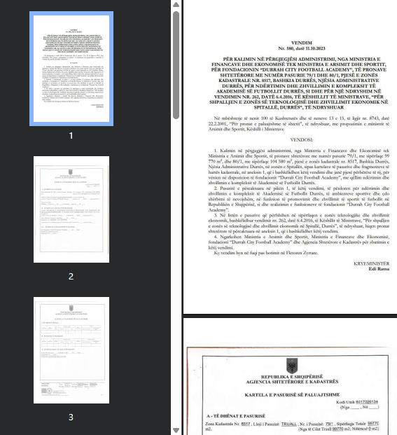 Me Vendimin e Këshillit të Ministrave nr. 580, datë 11 tetor 2023, Edi Rama vendos që pronat shtetërore me sipërfaqe totale mbi 200 mijë m2 në zonën kadastrale nr. 8517, Bashkia Durrës, në Spitallë, të përdoren për ndërtimin dhe zhvillimin e kompleksit të Akademisë së Futbollit Durrës.