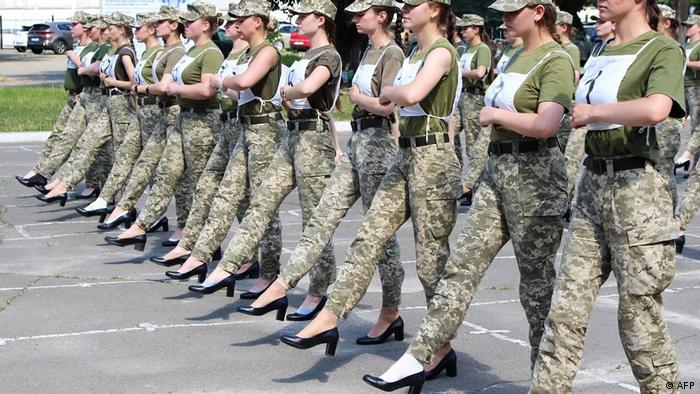 Në Ukrainë është ndezur një debat mbi seksizmin pas publikimit të fotografive zyrtare të parakalimit të ushtareve të mbathura me taka në vend të çizmeve ushtarake.