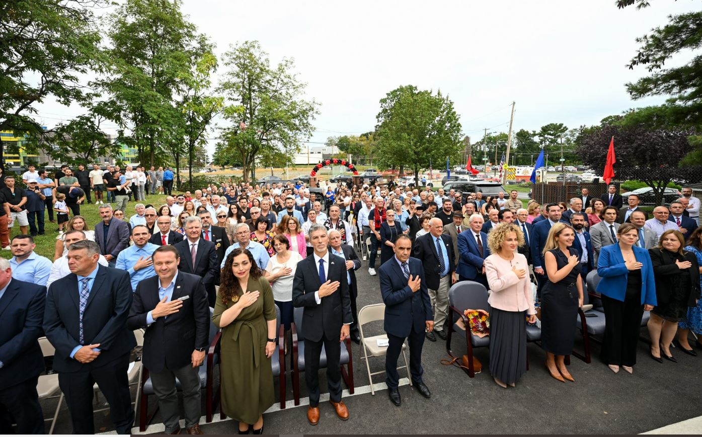 Kudo ishin flamujt kombëtarë shqiptarë në pritjen që u bë nga komuniteti shqiptaro-amerikanë, ku pjesa dërmuese ishin nga Kosova.