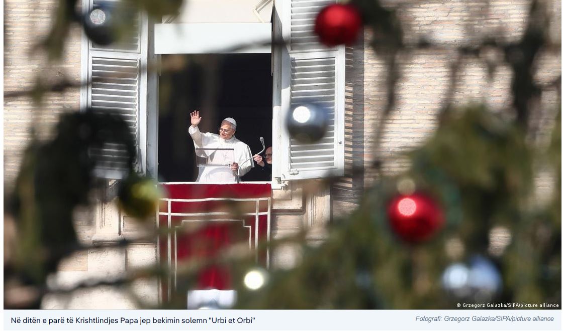 Vizitorëve dhe besimtarëve nuk u nevojiten bileta në ditën e parë të Krishtlindjes, kur Papa jep bekimin solemn “Urbi et Orbi” – “për qytetin dhe botën”. Leo XIV do të flasë nga ballkoni i Bazilikës së Shën Pjetrit i ndjekur nga dhjetëra-mijëra besimtarë në shesh. Fjala e tij fillon në orën 12:00. Edhe këtu sa më parë aq më mirë, sidomos në këtë Vit të Shenjtë, të shpallur nga Papa Françesku, i cili ndërroi jetë në prill. Viti i shenjtë vazhdon deri në fund të sezonit të Krishtlindjeve