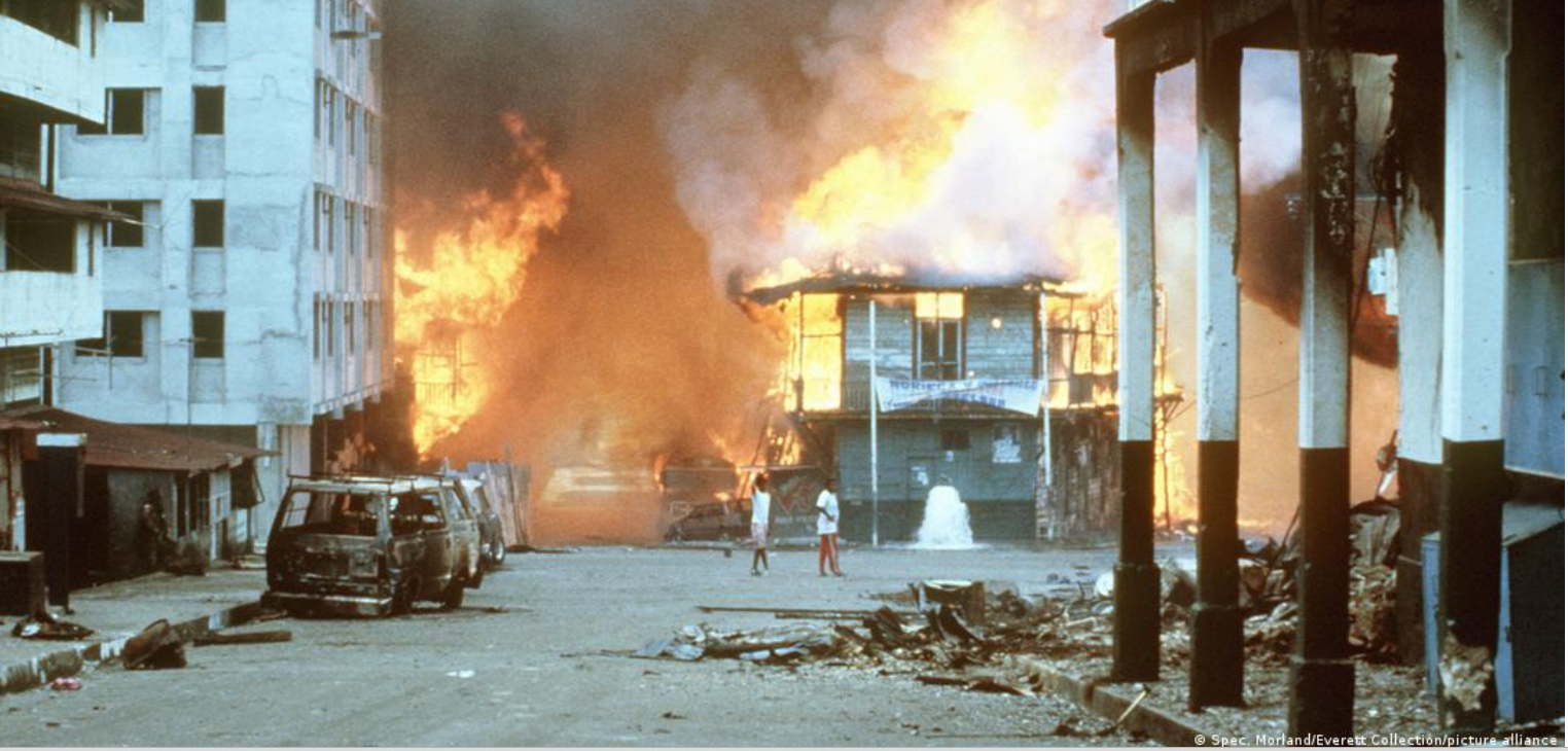 Në dhjetor 1989, Presidenti George H. W. Bush nisi një pushtim të madh të Panamasë, operacionin “Shkaku i Drejtë”. Përafërsisht 24,000 trupa amerikane u dërguan në vend me qëllim rrëzimin e Gjeneralit Manuel Noriega.