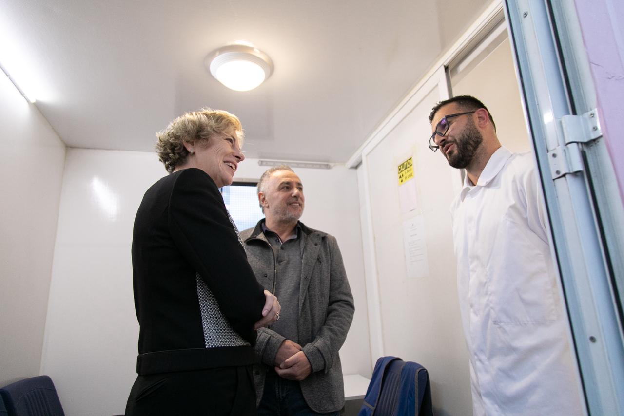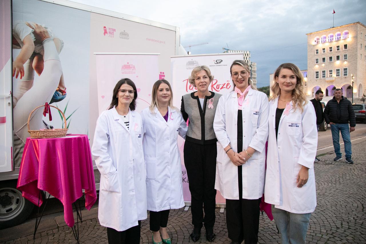 Ministrja e Shëndetësisë dhe Mirëqenies Sociale, Prof.Evis Sala u ndal në një prej njësive të mamografive lëvizëse të stacionuarnë sheshin “Nënë Tereza” në Tiranë, për të ndjekur nga afër procesin e kryerjes së mamografisë dhe sensibilizimin e qytetarëve mbi kryerjen e kontrolleve, si dhe rëndësinë e diagnostikimit të hershëm të kancerit të gjirit, për të rritur shanset për trajtim të suksesshëm dhe për të ulur vdekshmërinë nga kjo sëmundje. Shërbimi i kryerjes së mamografisë ofrohet falas gjatë gjithë vitit në 16 poliklinika dhe spitalet në të gjithë vendin, si dhe në 2 njësitë e lëvizshme të mamografisë.