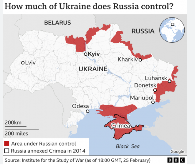 Ky terren i favorshëm ishte pika e nisjes për Rusinë në vitin 2014, pas aneksimit të Krimesë. Milicitë pro-ruse, të mbështetura nga Moska, morën shpejt kontrollin e Donetskut dhe Luhanskut, duke krijuar enklava separatiste që kanë qenë në luftë me forcat ukrainase për gati tetë vjet, duke lënë pas 14,000 të vdekur.