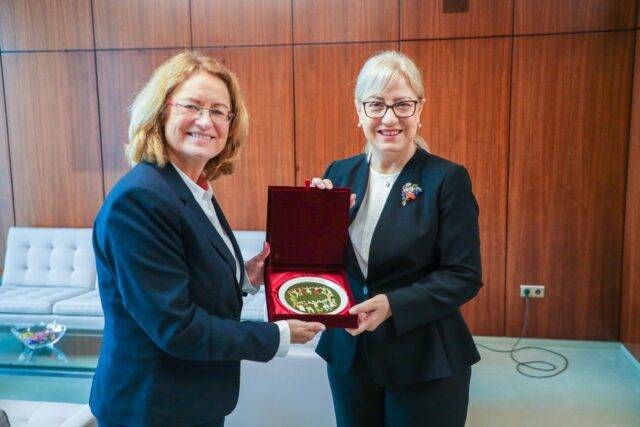 Gjatë vizitës në Bremen, Kryetarja Nikolla u takua me Presidenten e Parlamentit të Bremen, Antje Grotheer.