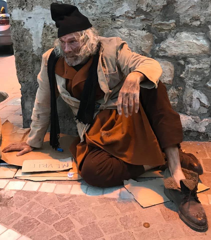 Foto: Bruno Shllaku në rolin At Zef Pllumit në dramen “Të korrat e gjelbërta”, shkruar dhe vënë në skenë nga Bruno Shllaku