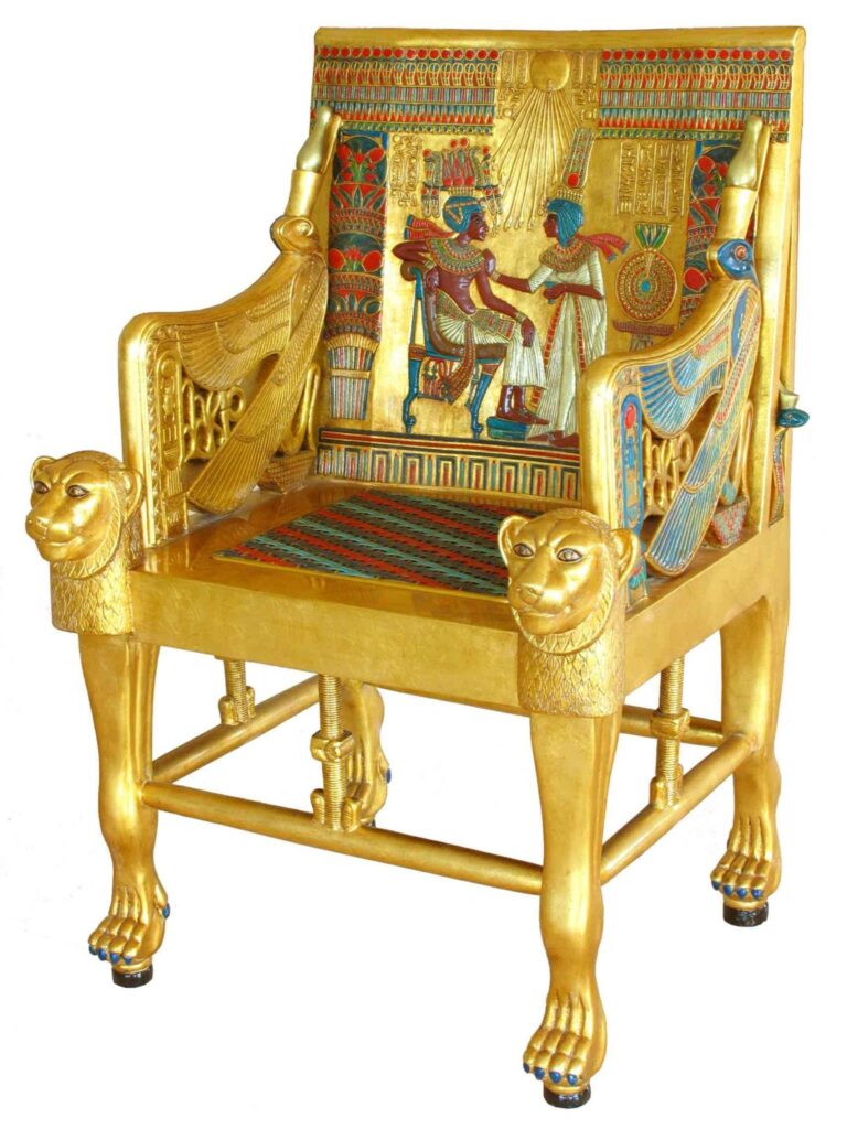 Froni i Tutankhamunit është prej druri, i mbuluar me ar dhe argjend dhe i zbukuruar me gurë gjysmë të çmuar dhe xham me ngjyra. Dy koka luanësh që dalin mbrojnë sediljen e fronit, ndërsa krahët marrin formën e gjarpërinjve me krahë që mbajnë kurorën e dyfishtë të Egjiptit dhe ruajnë emrat e mbretit. Ajo u zbulua në vitin 1922 në paradhomën e varrit të Tutankhamun (KV62) nën shtratin funeral të Hipopotamit. Froni quhet (“Ist”) në hieroglifet e lashta egjiptiane sipas emrit të perëndeshës së nënës Isis, e cila zakonisht përshkruhej duke mbajtur një fron në kokë si emblemën e saj karakteristike. Tani në Muzeun Egjiptian, Kajro. JE 62028