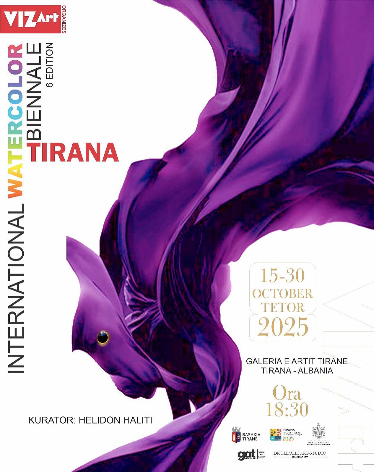 Nga datat 15 deri më 30 Tetor 2025, Galeria e Artit në Tiranë mirëpret një nga ngjarjet më të rëndësishme të artit pamor në rajon Bienalia e 6-të Ndërkombëtare e Akuarelit, një urë arti, kulture dhe dialogu e kuruar mjeshtërisht nga artisti i mirënjohur Helidon Haliti, nën organizimin e përkushtuar të Shoqatës Kulturore VIZart. Ky edicion është shumë më tepër se një ekspozitë është një akt i gjallë komunikimi shpirtëror, ku akuareli, kjo teknikë delikate dhe poetike, shndërrohet në një gjuhë universale që flet për miqësi, besim, bukuritë e botës dhe shpirtin njerëzor.