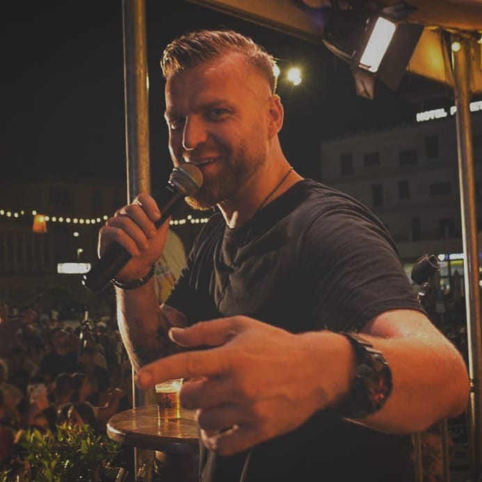 Dritat e skenës ndizen ngadalë, si një agim që lind mes duarve të publikut. Një murmurimë e butë kalon mbi sallë, një pritje që rritet si valë deti para se të përplaset. Mateus Frroku del në skenë jo si një yll i largët, por si një mik i vjetër që vjen të të trokasë në derën e çdo zemre.