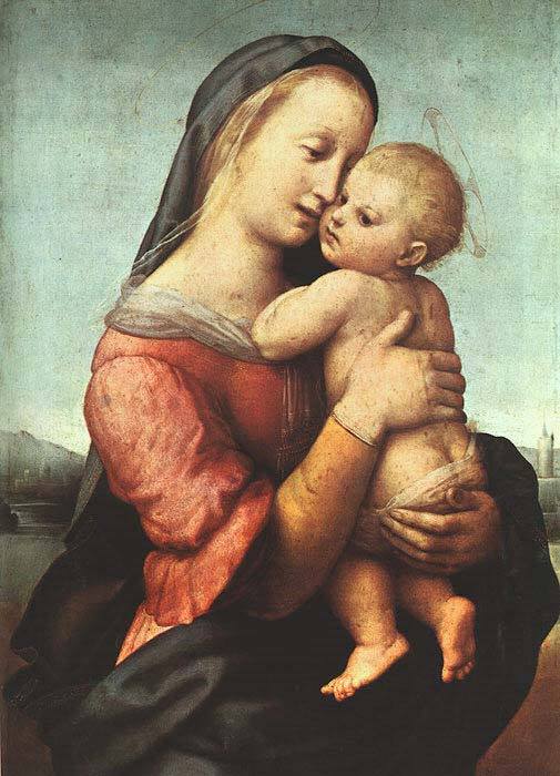 Fëmija Jezus në tablotë e Rafaelos është gjithnjë i ndrojtur, i frikësuar, po. Ai e ndjen gjithnjë nevojën për të gjetur strehë në gjoksin e të ëmës, Mari. Bota për të është e pasigurt, kërcënuese dhe e rrezikuar. Ai askund më i sigurt se në prehrin e nënës nuk ndihet. Por edhe aty, në portretin e fëmijës Jezus është lehtësisht i lexueshëm ai hutim, ajo frikë, ajo ndjen fëmije e pambrojtur nga mosha dhe e ekspozuar nga sakrifica. Shpirti i piktorit nuk ka mundur ta fshehë këtë vragë të dhimbshme që e lëndon në të çdoditshmen e tij. Ai përjetoi fëmijën e shenjtë të njeriut të sakrificës dhe mishërimit të të lartit vullnet ngadhënjimi mbi vdekjen, i mishëroi gjithë mundimet me një shpirt që e lartësoi vullnetin dhe i blatoi besimit, atë që kishte më të shtrenjtë dhe që e përjetësoi, artin.