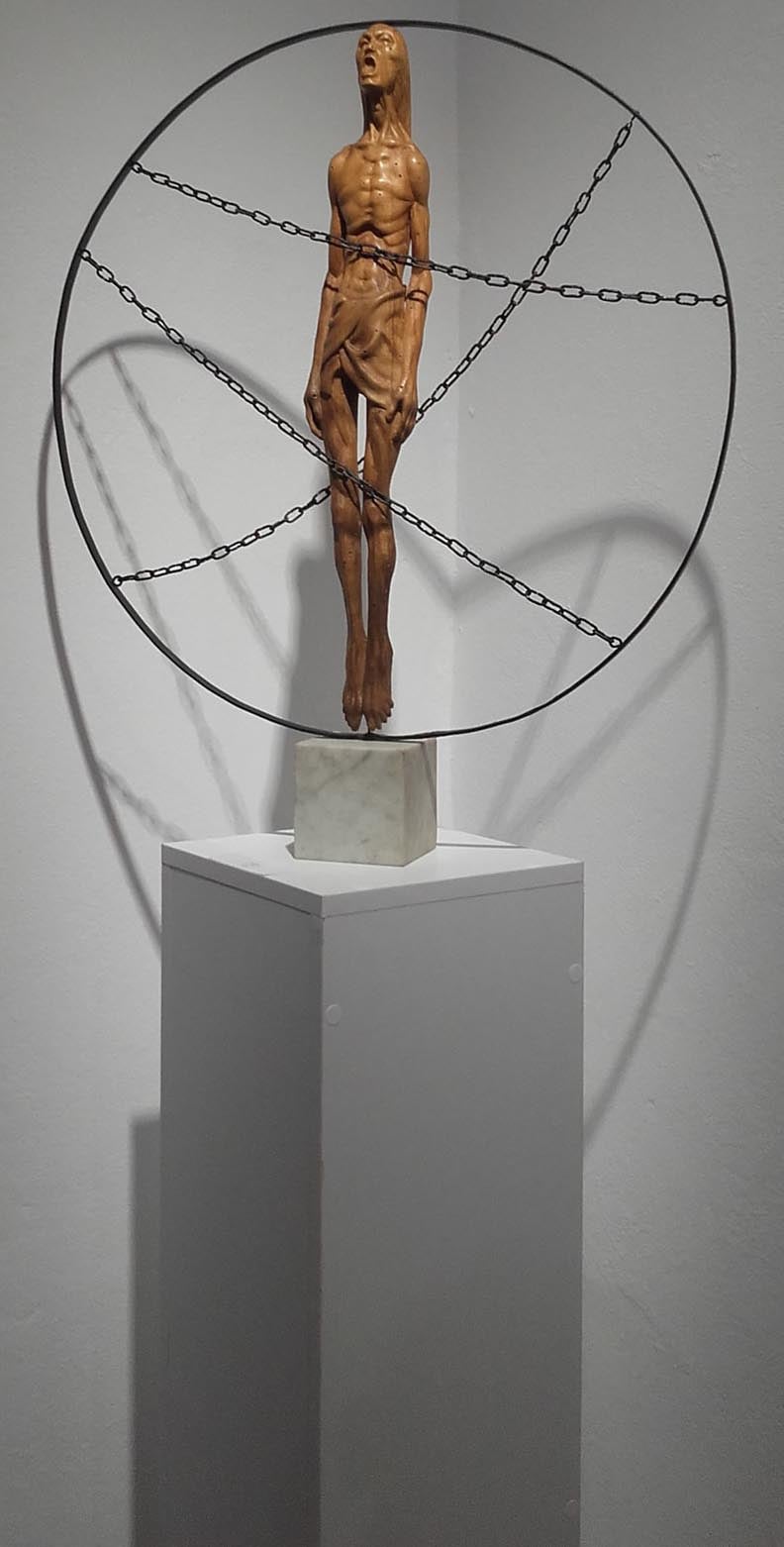 Artisti del nga koha për t’i dhënë një kuptim të ndryshtë kohës, dhe e bën këtë përplasje të mendimeve dhe realitetit, tashmërinë e një gjendjeje, të këtushmen e ndijimit të linjave dhe thyerjes së formës. Ai i jep trajtë asaj që ndjen, e vesh me një kuptimsi të re atë që e thërret në vetdijësim. Zgjohet si prej një ëndrre të makshme dhe këtë shtjellë që përpin botën, ai e materializon në diçka që nuk është as materie as frymë, dhe njëherash është një aliazh metali dhe druri, një realitet që merr formë deri në shpërfytyrim. Më shumë se një çlirim për të është nevojë e ngutshme komunikimi. Gjuha që ka zgjedhur t’u predikojë botën që ai sheh, kupton dhe percepton, nuk është gjuha që ne kuptojmë, por gjuha që ne ndjejmë, është “Magnum Opus”, prekja e beftë e metamorfozës.