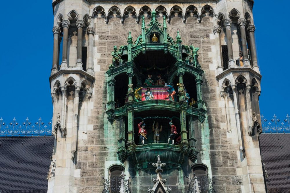 5. Mynih – Rathaus-Glockenspiel. Kulla e famshme e orës me 80 metrat e saj të gjatë është një kryevepër e stilit gotik.