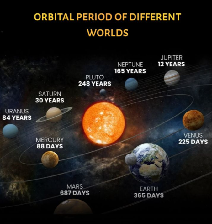 Sistemi ynë diellor është një orë e madhe kozmike, dhe çdo planet ndjek rrahjen e vet të veçantë ndërsa rrotullohet rreth Diellit. Planeti më i afërt me Diellin, Merkuri, e përfundon një orbitë për vetëm 88 ditë, duke e bërë vitin e tij jashtëzakonisht të shkurtër. Më pas vjen Venera, me një udhëtim elegant prej 225 ditësh, ndërsa Toka jonë e përfundon rrethin e njohur për 365 ditë, një ritëm me të cilin jetojmë çdo ditë.