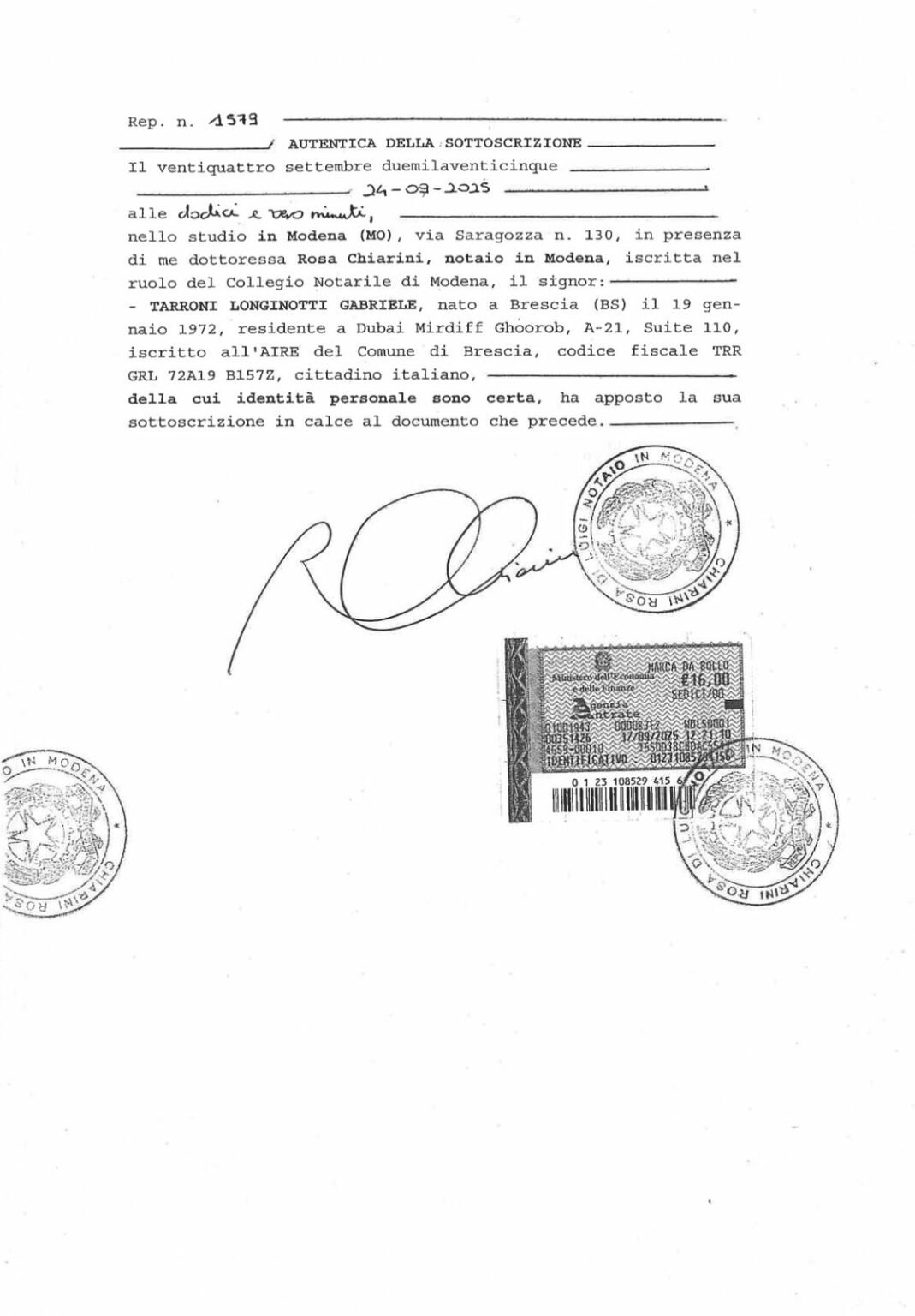 Ndërkohë së fundmi avokatët e Veliajt dorëzuan në gjykatë një deklaratë noteriale të nënshkruar më 24 shtator 2025 në Modena, përpara noteres Rosa Chiarini.