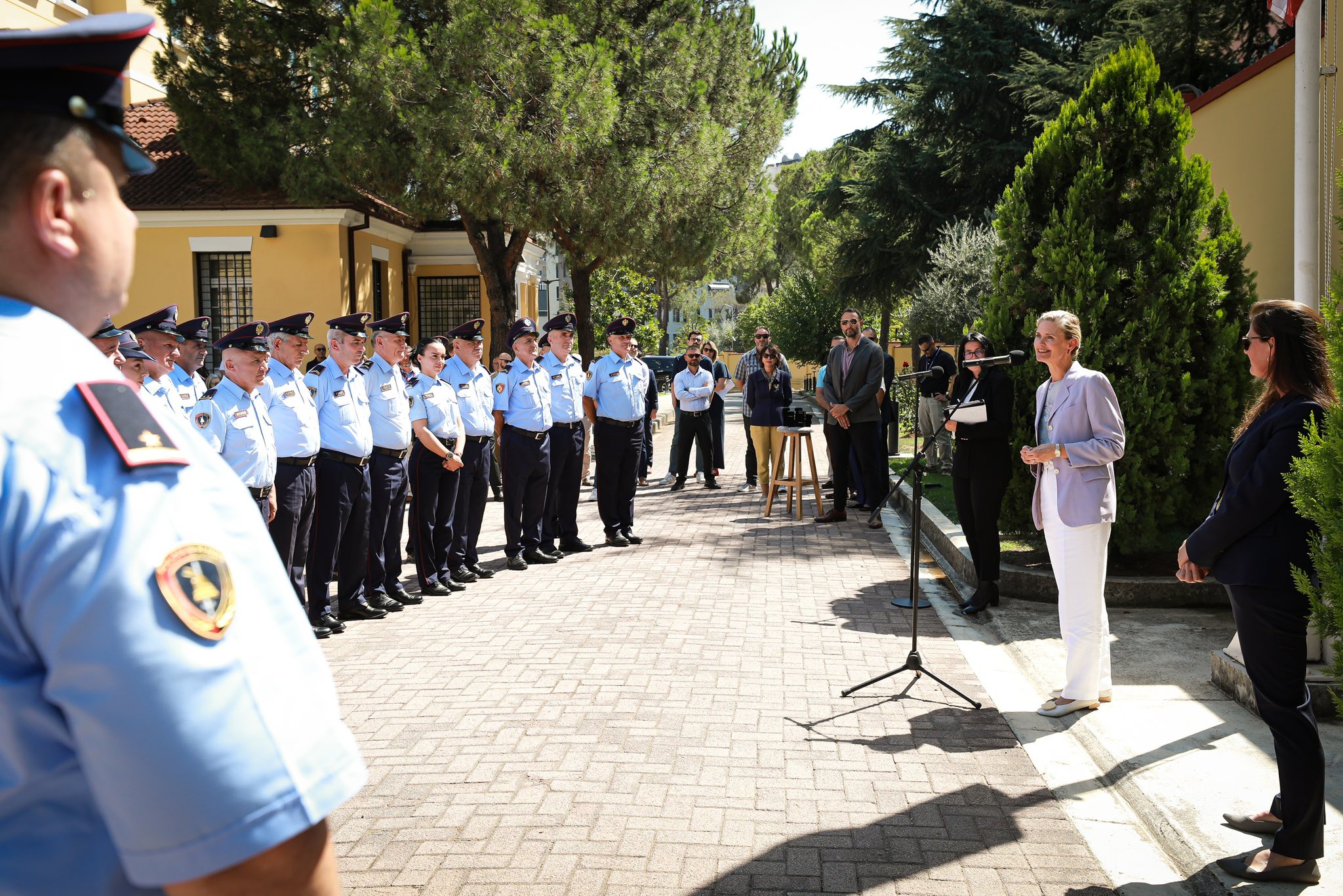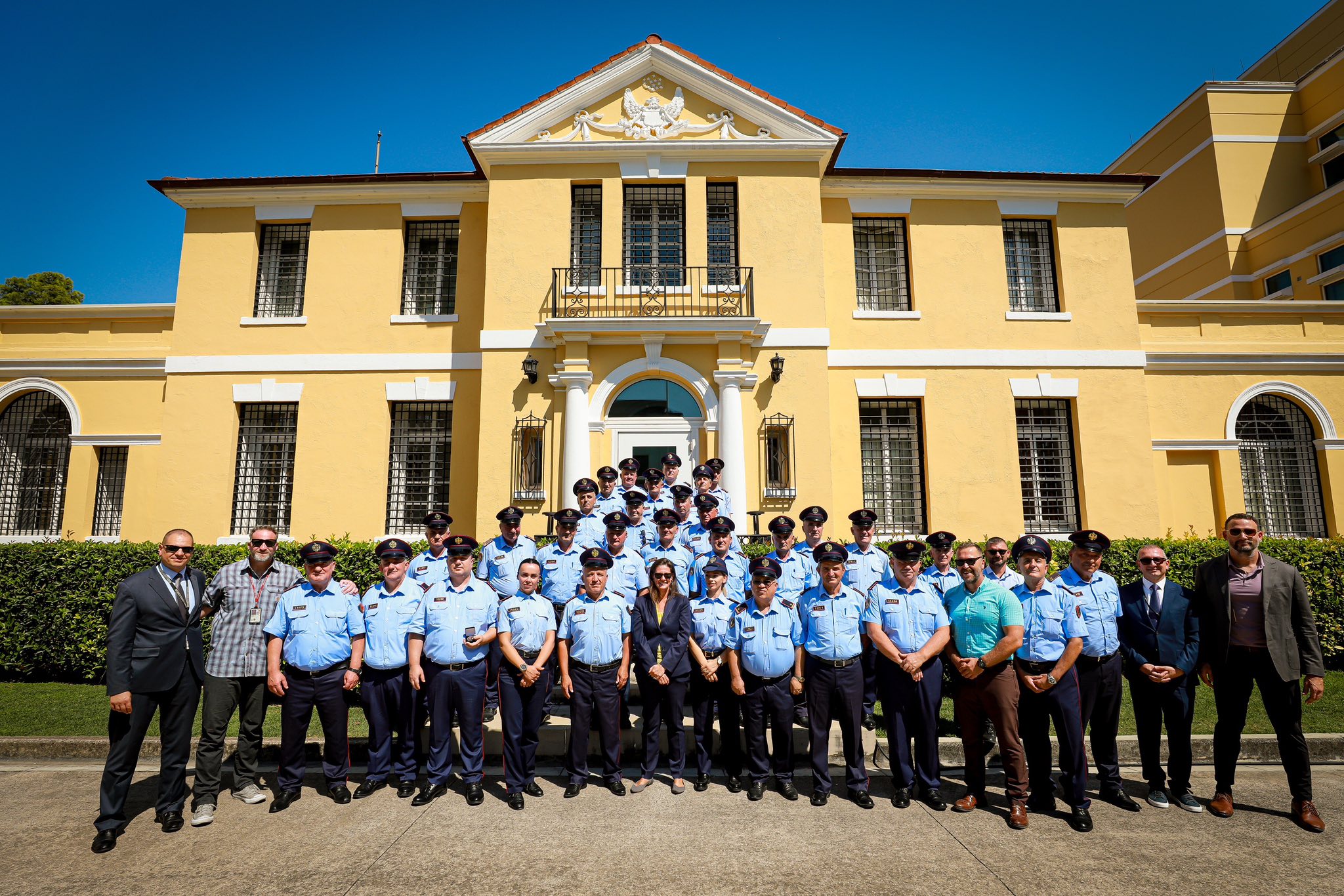 Një falënderim për Policinë e Shtetit që e bën ambasadën tonë më të sigurt çdo ditë! Sot, e Ngarkuara me Punë Nancy VanHorn dhe Zyra Rajonale e Sigurisë i nderuan në një ceremoni vlerësimi për shërbimin e tyre disa prej tyre për më shumë se 15 vjet! Ambasada e Shteteve të Bashkuara e vlerëson thellësisht partneritetin tonë me forcat e rendit në Shqipëri për të penguar kërcënimet dhe për të mbrojtur qytetarët tanë.