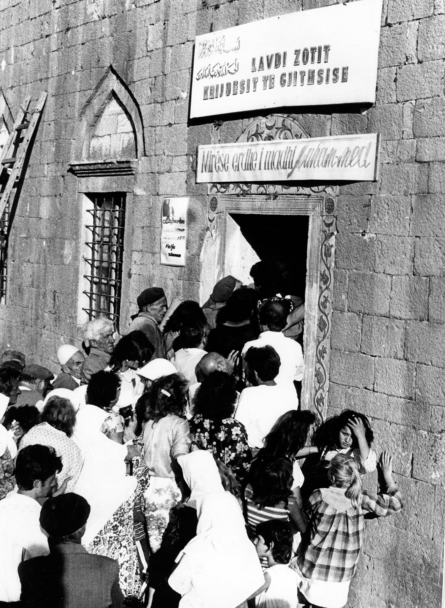 Ky imazh i besimtarëve që orientohen drejt hyrjes së një hapësire të shenjtë, shënon edhe rihapjen së Xhamisë së Plumbit në Shkodër më 16 nëntor 1990, pas mbylljes së saj në vitin 1967 në kuadër të Revolucionit Kultoror.