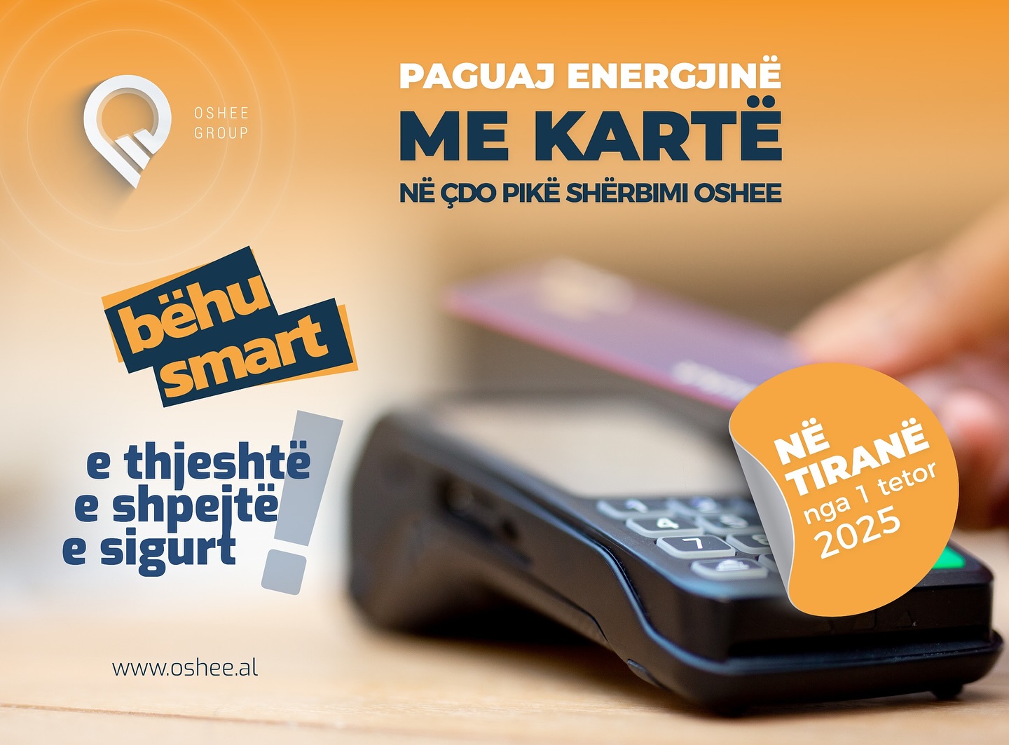 Tashmë faturat e energjisë mund të paguhen edhe me kartë bankare në çdo pikë shërbimi të #OSHEE. Më shpejt, më thjesht dhe mbi të gjitha pa asnjë kosto shtesë.