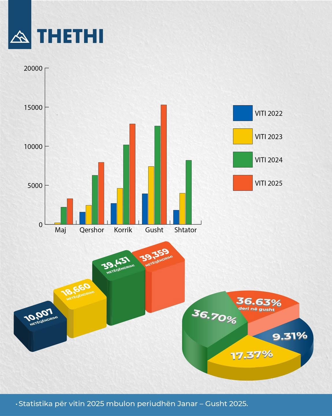 • Thethi në Alpe ka përjetuar një zgjerim të jashtëzakonshëm, duke shumëfishuar netët e akomodimit falë aksesit më të mirë dhe promovimit ndërkombëtar.
