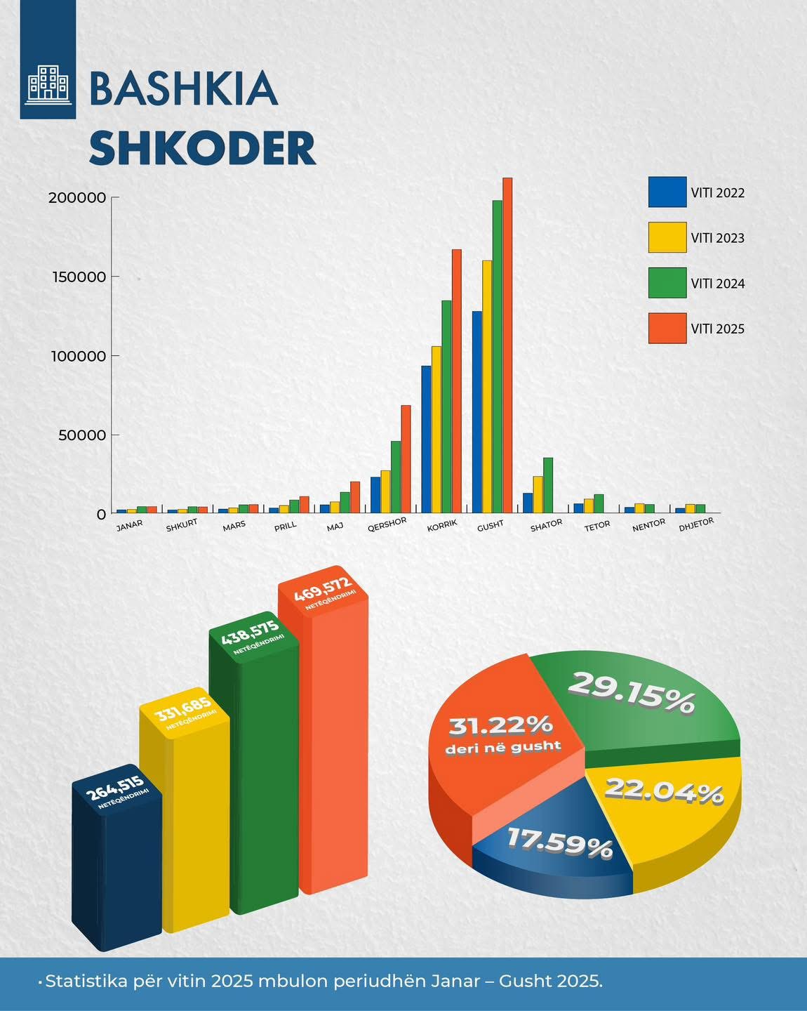 Pas një sezoni veror të suksesshëm, Kryetari i Bashkisë Shkodër, Benet Beci, publikon të dhëna të jashtëzakonshme për rritjen e turizmit në qytet. Nga një potencial i njohur prej dekadash, Shkodra po shndërrohet në një realitet ekonomik dhe social që prek drejtpërdrejt jetën e qytetarëve.