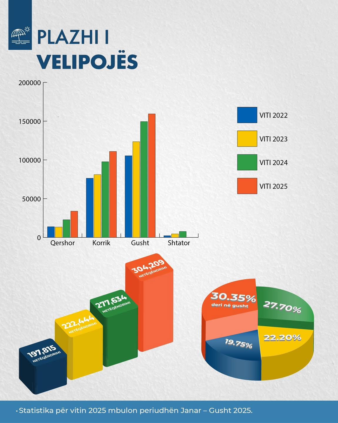 • Velipoja mbetet gjeneratori kryesor i volumit, me një sezon të përqendruar në korrik-gusht, por tashmë me rritje të dukshme edhe në qershor dhe shtator.