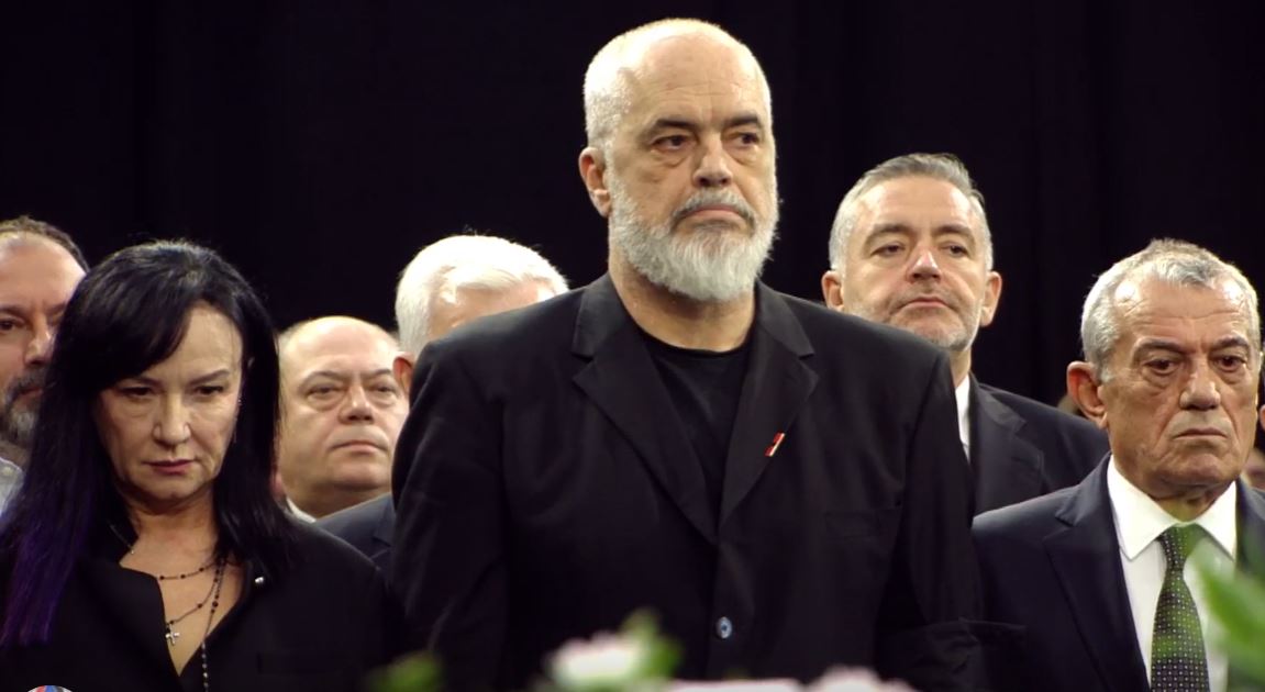 Edi Rama dhe bashkëshortja e tij, sot në ceremoninë e lamtumirës së Fatos Nanos