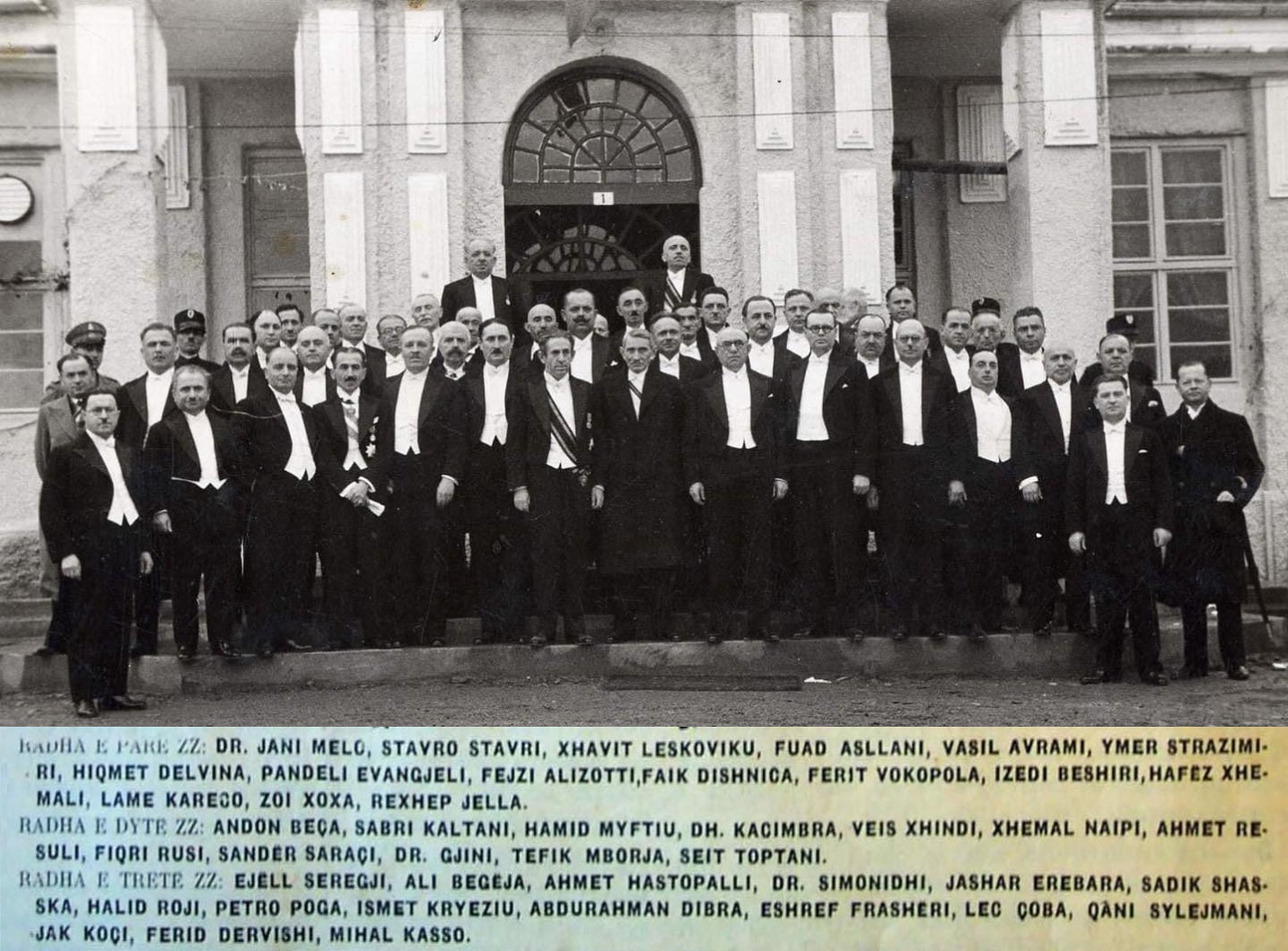 Eqrem bej Vlora, Rexhep Agopashiq Mitrovica, Dervish bej Biçaku, Hafiz Sherif Langu, Elefter Nosi, Rauf Fico, Ali Asllani, Ferit Vokopola, Dhimitër Berati. Ndersa ne foton e trete, Deputetët e Parlamentit të Shqipërisë në vitin 1937. Në mesin e tyre edhe Ferit Vokopola.