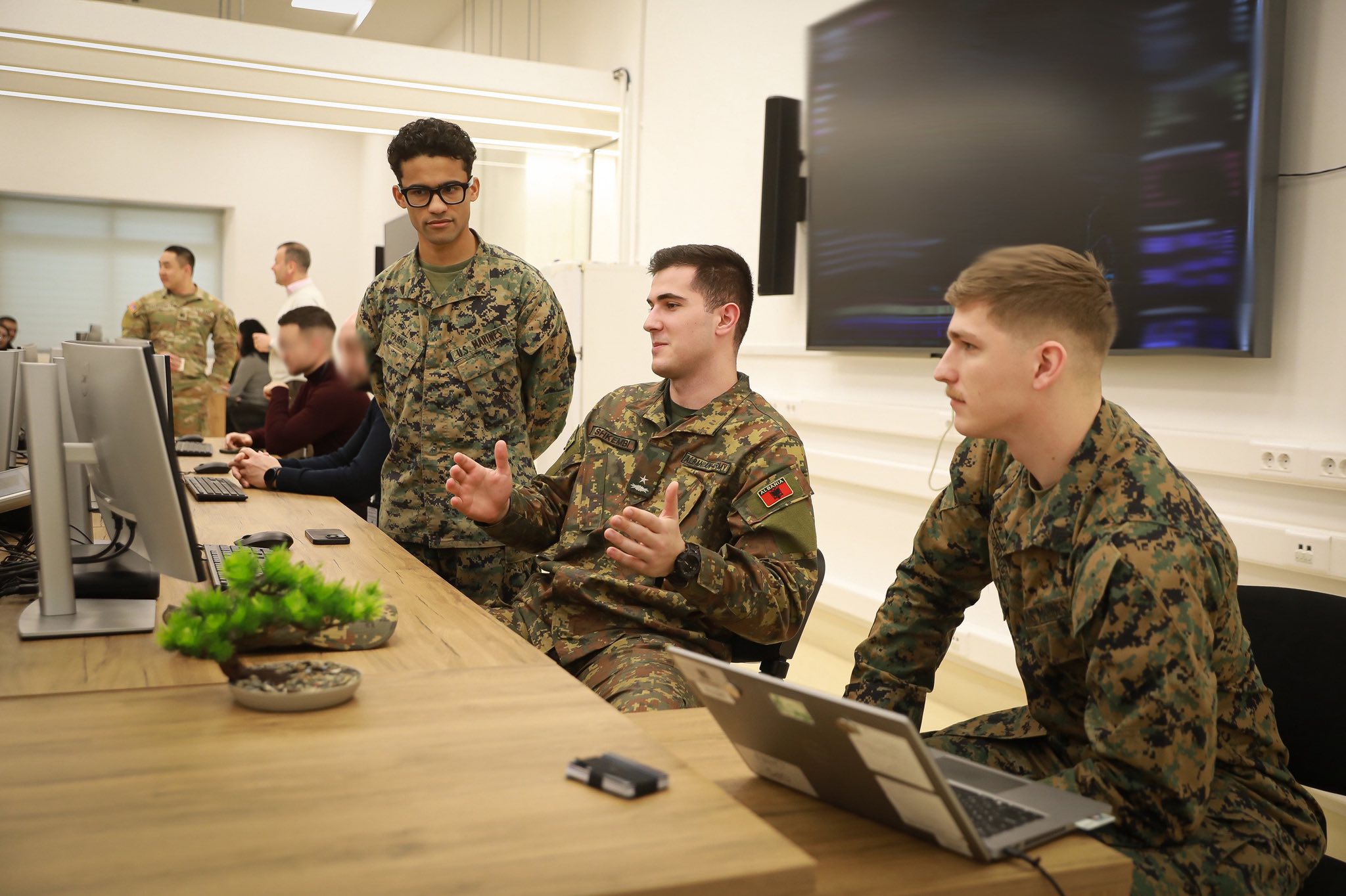 Marinsat amerikanë nga Marine Rotational Force–Europe po punojnë me specialistët e sigurisë kibernetike të Forcave të Armatosura të Shqipërisë gjatë një trajnimi dyjavor për Operacionet Mbrojtëse Kibernetike në Tiranë.