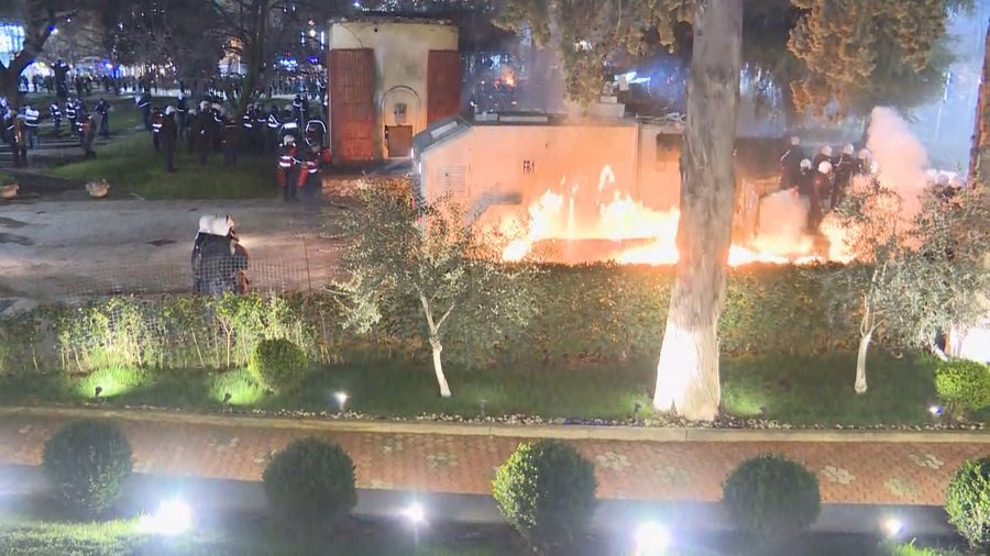 FOTO/ Flakë edhe tek Parlamenti, gaz i madh hidhet dhe ujë me piper. Po shpërndahen protestuesit