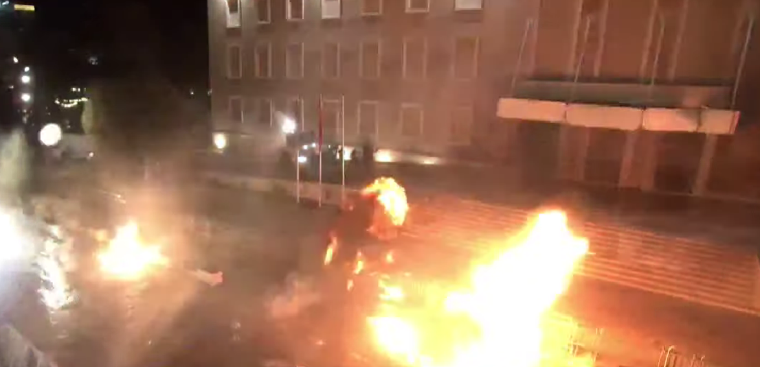 Gjatë fjalimit të Sali Berishës, militantët e tij hodhën molotovë dhe fishekzjarre drejt Kryeministrisë, duke rrezikuar seriozisht jo vetëm jetën e qindra efektivëve të policisë, por edhe të vetë demokratëve të pranishëm në protestë.