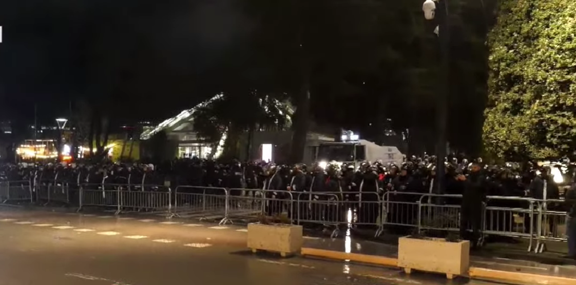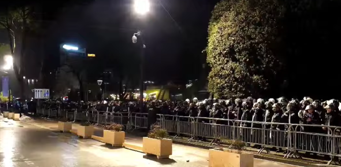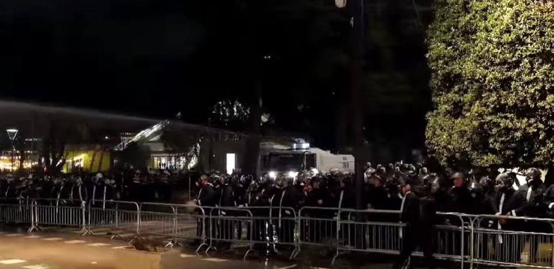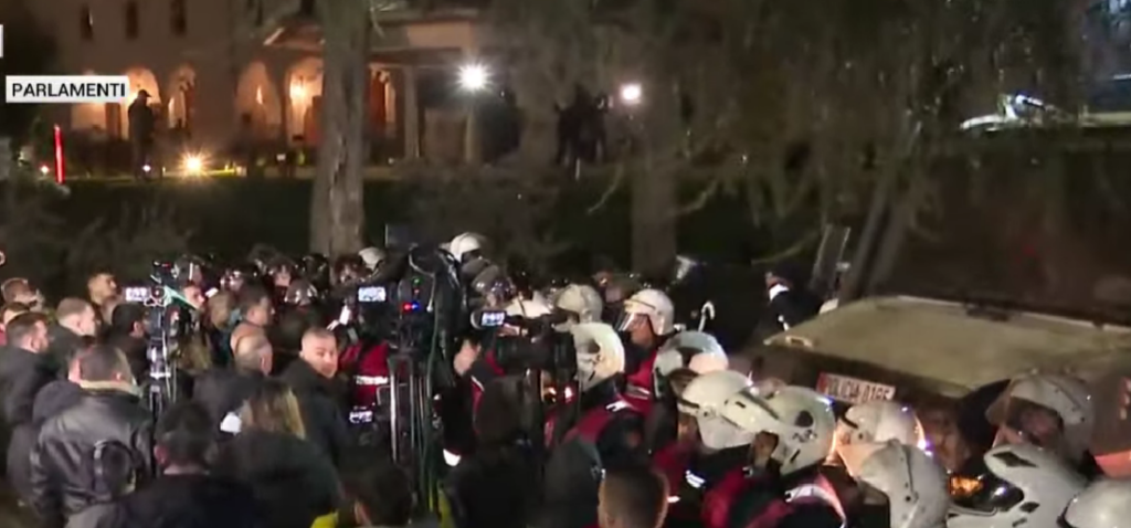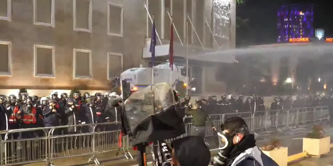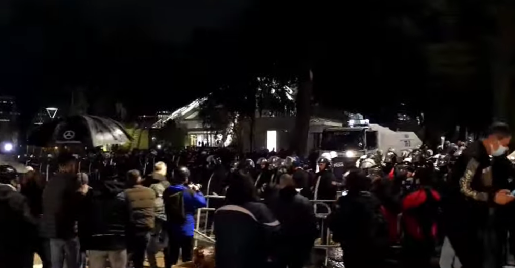 Dhjetëra protestues po tentojnë që të çajnë rrethimin e vendosur nga Policia, duke shtyrë gardhin metalik dhe kordonin e efektivëve që ruanin godinën qeveritare. Në disa momente janë regjistruar tensione të forta, ndërsa janë hedhur sende të forta dhe mjete piroteknike në drejtim të Policisë.