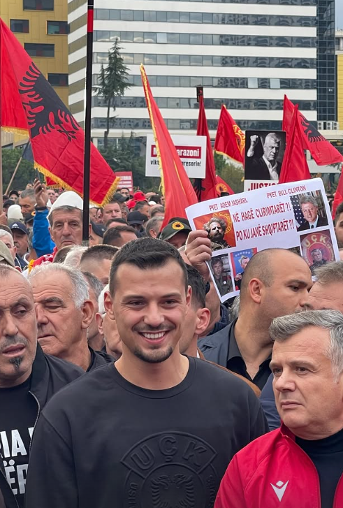 Djali i ish-presidentit Hashim Thaçi, Endrit Thaçi ndodhet në sheshin “Skënderbej” në Tiranë për të mbështetur babain e tij dhe liderët që po mbahen padrejtësisht në paraburgim në Hagë. Ai është parë krah kreut të grupit parlamentar të PS-së, Taulant Ballës.