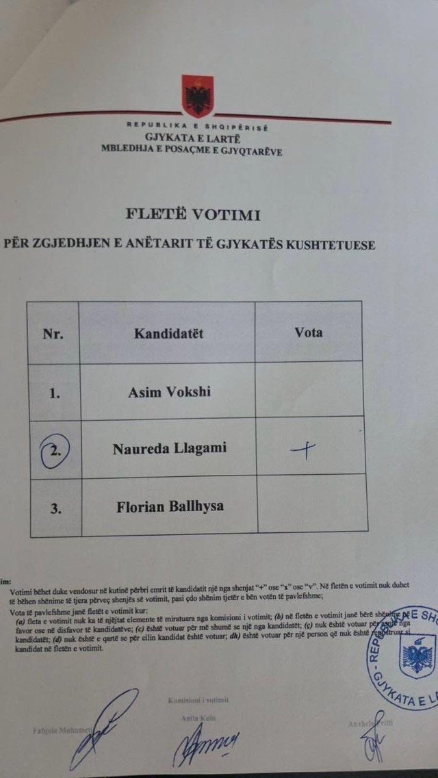 Procesi i përzgjedhjes së gjyqtarit të ri kushtetues ka pasur një episod të dyshimtë, i cili mund të ndryshonte tërësisht rrjedhën e vendimmarrjes. Vota e shpallur e pavlefshme, në fakt tregonte qartësisht se ishte në favor të kandidates Naureda Llagami, ish-kryetare e Këshillit të Lartë Gjyqësor.