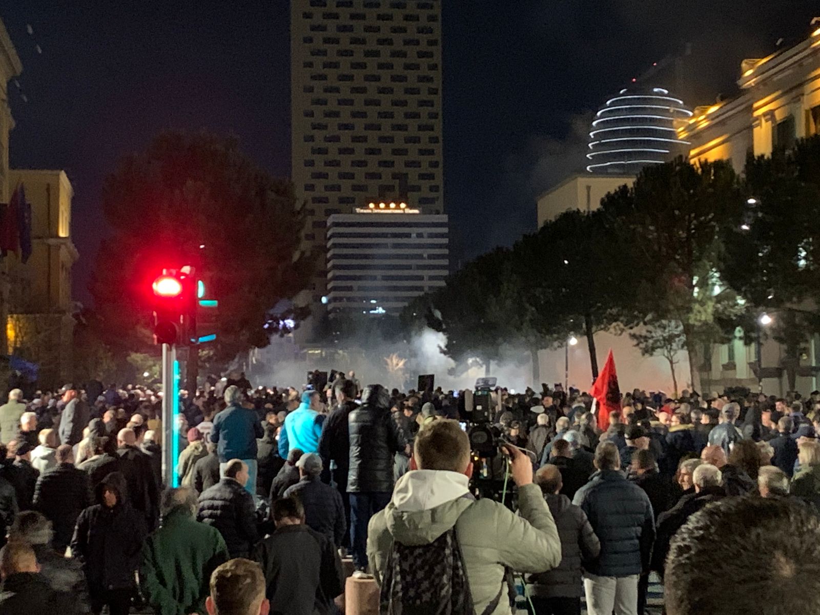 Situata tek Ministria e Brendshme e Shqipërisë ka shpërthyer në kaos gjatë protestës së opozitës. Një grup protestuesish ka hedhur bombola Molotov drejt godinës, duke shkaktuar tym dhe panik ndër të pranishmit.