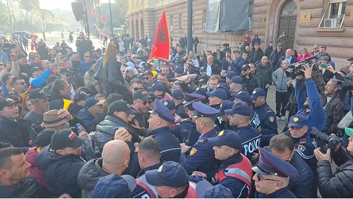 Protesta ka nisur me tensione, ku protestuesit janë përplasur fizikisht me policinë duke i shtyrë dhe tentuar që të afrohen në godinën e Kryesisë së Kuvendit.