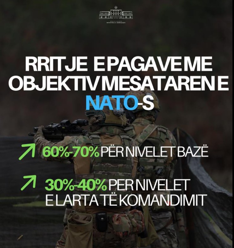 Ministri i Mbrojtjes: Rritje pagash deri në 70% për Forcat e Armatosura