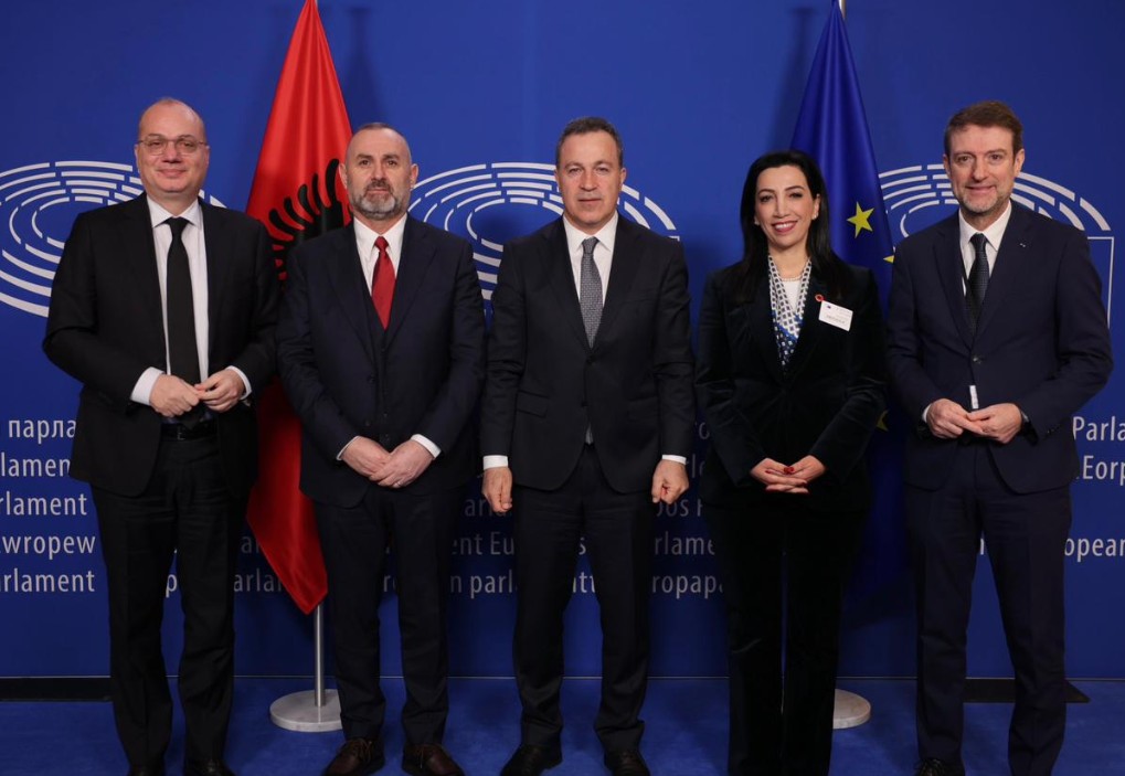 Në këtë vizitë, Kryetari i Kuvendit u shoqërua nga një delegacion i Kuvendit, i përbërë nga Igli Hasani, Kryetar i Komisionit për Europën dhe Punët e Jashtme, Ulsi Manja, Kryetar i Komisionit për Çështjet Ligjore dhe Administratën Publike, Evis Kushi, Zv/Kryetare e Komisionit për Arsimin, Shkencën dhe Sportin, si dhe Ambasadori i Shqipërisë në BE, Ferit Hoxha.