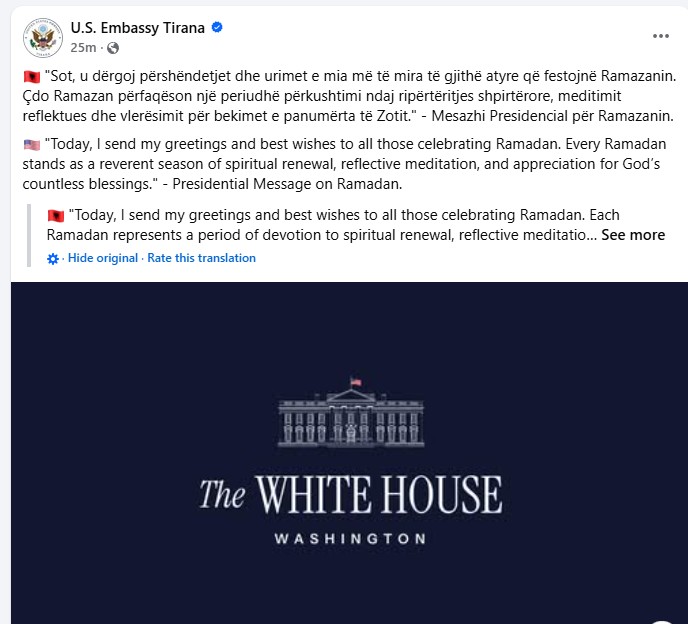 Nis muaji i Ramazanit, Ambasada Amerikane: Urimet më të mira besimtarëve myslimanë