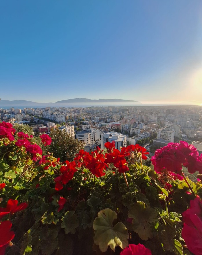 Kryeministri Edi Rama ndau sot në rrjetet sociale një pamje nga Vlora, ku qyteti bregdetar i qetë nga një kodër mes luleve.